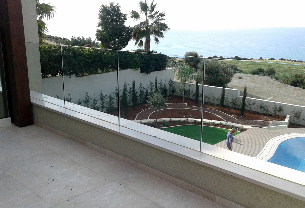 RAILING WITH GLASS AT A VILLA IN PAPHOS